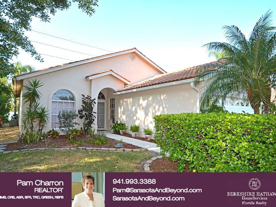 Located in the Seville section of Center Gate, an enclave of 54 single family homes. This particular home offers 2 bedrooms plus a den (den has closet for third bedroom) in over 1,700 sq ft and a 2 car garage. Making it special, is the fabulous outdoor salt water heated pool. The lot has preserve on one side for added privacy. For most, this home will need cosmetic updates such as carpet, paint and wall paper and some appliances but the layout is great. Open and bright, high ceilings, spacious rooms and a 2 car garage. A/C is about 3+ years old, pool deck freshly painted. Bring your imagination and enjoy the great outdoor living space, premium lot and excellent location. Only minutes to shopping, dining, the interstate and easy drive to Siesta Key.