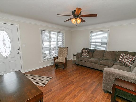 Move-in ready, wonderfully remodeled, 3 bedroom, 1.5 bathroom, Cape Cod in Brooklyn. As you enter the home, you find yourself in the spacious living room. Follow the beautiful wood flooring farther into the home and you will discovery the full kitchen. The renovated eat-in kitchen has high-end appliances, and ample space for cooking and enjoying meals with family and friends. The first floor has a full bathroom with stylish bead-board, a pedestal sink, and a bath/shower. There are two bedrooms on the first floor, both with dark, rich flooring, closets, and abundant natural light. The second floor loft is the perfect owner's oasis. Already painted in a serene blue, this area is complete with a sitting area, a large walk-in closet, and enough space for a wide bed. One of the best parts about his home is the partially finished basement, with a beautiful wood bar, modern flooring and chic paint colors. The rest of the basement has the high-end washer and dryer, half bath, and great storage space. Many updates have been done in the last ten years: furnace, central a/c and windows all in 2008. The backyard has an extra-large 2.5 car garage and a beautiful small stream running behind it where you can often find ducks and deer. Central location, just 15 minutes from downtown Cleveland, and minutes from the Brooklyn Rec. center, Memorial Park, schools and pools. Come see this home today!