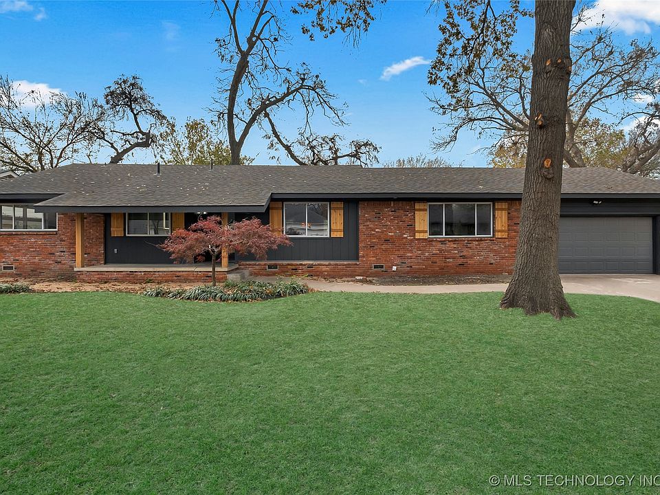 Welcome to Forest Grove, where this rare single-story mid-century home sits on a stunning, tree-covered expansive lot that immediately sets the tone for the lifestyle lived here. From the moment you arrive, the canopy of mature trees, the quiet, winding streets, and the sense of privacy create an atmosphere that feels both exclusive and effortlessly inviting. Just minutes from 43rd & Utica and the vibrant Brookside scene, this location offers a true luxury balance: access to Tulsa’s best dining, boutiques, and entertainment paired with the serenity of a tucked-away, established community. Forest Grove is comprised of a handful of homes, positioned beside prestigious Bolewood, and known for its peaceful ambience, architectural charm, and the kind of neighborhood culture that is nearly impossible to replicate. The home itself offers approximately three thousand square feet of refined living space and a thoughtful, design-forward remodel that blends its 1955 character with modern luxury. Inside, warm original hardwood floors, curated designer finishes, and intentional updates create an inviting yet elevated feel. The open kitchen with its island and pantry flows seamlessly into the living areas, making everyday living feel indulgent and gathering guests feel effortless. The layout features four bedrooms and three bathrooms, including a serene primary suite and a private MIL suite perfect for hosting with comfort and ease. The spacious, treed lot gives the home a sense of retreat, with natural light filtering through the leaves and outdoor spaces that feel like an extension of the interior. Whether relaxing on the patio, enjoying morning coffee under the trees, or entertaining friends as the sun sets, the setting elevates every moment. For buyers seeking a lifestyle defined by prestige, tranquility, and proximity to everything that makes Tulsa exceptional, this Forest Grove residence is rare.