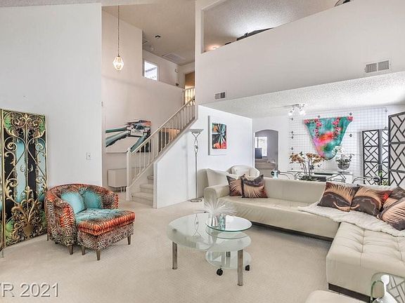 Located in the north central Vegas valley with No HOA, Drive up to a manicured curb appeal front walkway then into a gorgeous 2 story home that features a formal living room with vaulted ceilings and formal dining area. Oversized primary bedroom with a large walk-in closet, an en suite bathroom with double sinks, separate shower and tub. Vaulted ceilings in the family room with a gas fireplace, kitchen has travertine tile flooring and the appliances in the kitchen stays. Upstairs loft overlooks downstairs, 2 nice size bedrooms, 2nd bedroom has 3 double closets, sink, with a Jack and Jill bathroom to the 3rd bedroom that also has 3 double closets. Low maintenance manicured backyard with a covered patio. One of the largest lot with room for R/V parking. The back garden has room for a pool. Living and dining room windows have updated double glaze windows for additional soundproof.