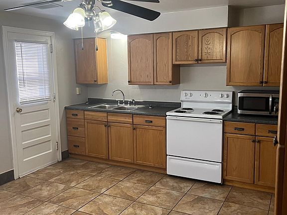 Very nice townhouse with a great front porch. All hardwood floors, nice size eat in kitchen and a great garage for parking and storage. Laundry in unit! Pet friendly! Full basement for storage or workspace and great detached garage in the back.. Central A/C tenants pay gas, electric, and water