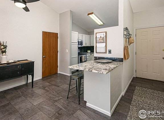 Welcome to this light-filled open concept ranch! Walking in you're greeted by a kitchen breakfast bar, granite counters and stainless appliances. The main living area boasts vaulted ceilings, Acacia wood floors, modern tile, and an updated gas fireplace, perfect for entertaining. Continue outside to an amazing Trex deck featuring a hot tub (negotiable) and views of Horseshoe Lake. The large backyard has an enclosed garden, mature trees, space to play and fulfill your Pinterest dreams! Full basement, partial finish with 2 beds and 1 bath offering endless opportunities with wonderful garden level windows. Solar panels owned/transferable warranty. Newer roof. Front yard professionally landscaped. 7 minutes to Boyd Lake!!