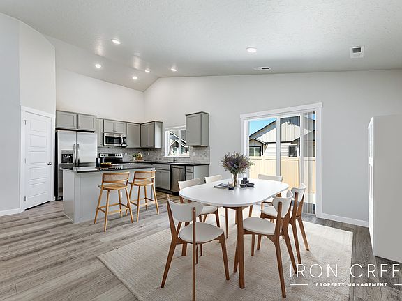 HIGHLIGHTS: Built in 2023 with modern finishes Vaulted ceilings in the great room Quartz countertops DETAILS: Welcome to this like-new 4-bedroom, 2-bathroom single-level home offering 1,860 sq. ft. of thoughtfully designed living space. The open-concept layout seamlessly connects the kitchen, dining area, and living room, all enhanced by vaulted ceilings that amplify the sense of space and natural light. The kitchen is a chef's delight, featuring luxurious quartz countertops and stainless steel appliances. A spacious walk-in pantry provides ample storage, keeping your kitchen organized and clutter-free. The master suite serves as a private retreat, complete with a walk-in closet and an en suite bathroom that includes dual vanities and a walk-in shower. Three additional bedrooms share a full bathroom equipped with a tub and shower combo. Step outside to a fully fenced backyard, perfect for outdoor activities or relaxing evenings. The patio area offers an ideal space for grilling or enjoying the fresh air. Additional features include a 2-car attached garage and a laundry room equipped with a washer and dryer for your convenience. The home is pet-friendly, welcoming one small dog or cat. Located just minutes from new restaurants, a grocery store, and shopping on Ten Mile, as well as easy access to the freeway, convenience is at your fingertips. A community park is just around the corner, offering outdoor recreation opportunities. Lease terms: - First term is through June 9, 2026. Subsequent lease extensions offered on 12 month terms. - Unfurnished - Renter to pay all utilities, Owner pays HOA. - Tenant is responsible for landscaping - Appliances: Refrigerator, stove, oven, microwave, garbage disposal, washer, dryer - Up to 1 dog under 25 lbs. considered with pet screening. One-time pet fee of $200 per pet and monthly pet rent of $40 per pet apply. All pets must be screened and approved. No pets under 12 months of age, restricted breeds or exotic animals. (Does not apply to assistance animals) - 2 car garage - No-smoking or vaping anywhere on premises - No Roommates SUMMARY SCREENING CRITERIA - - 680 + credit score - - 3x rent to income ratio - - Positive rent history - - Verifiable work experience - - Pass criminal background check Application fee is $40 for each occupant 18 years or older. Pet screening is $25 per pet. Assistance animal requests are verified at no charge. We strongly recommend you or someone you trust tours the property in person before applying. Most properties have been lived in before and have some imperfections which can be noted on the move in condition form. We do our best to ensure the information in this listing is accurate but is not guaranteed and may be changed without notice. Renter to verify all information. Applications can be found at ironcreekpm(dot)com.