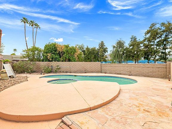 Welcome to this charming single-level home located in the heart of Palm Desert with NO monthly HOA!Stepping through the private gated courtyard you will find 3 bedrooms, 2 bathrooms, with just over 1,150 sq. ft. of comfortable living space perfect as a primary residence or desert getaway!Inside is light and bright with plantation shutters and easy-care tile flooring. The kitchen is warm and inviting with beautiful wood cabinetry, granite countertops, stainless steel appliances, and plenty of storage.Enjoy sunny days with your private pool and spa, with lots of space for outdoor dining, barbecues, or simply lounging.Added bonus- front row to the firework show at COD from your backyard!With a one-car garage, covered carport, and a storage shed, this home is both charming and practical--ready to welcome its next owners.Don't miss the chance to make this special home yours--schedule a showing today and see why it's the perfect place to start your next chapter!