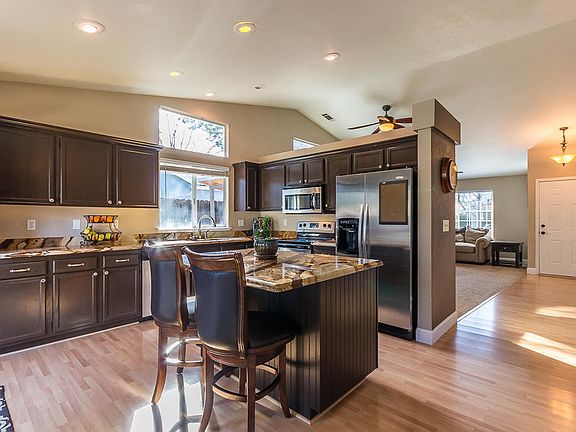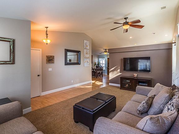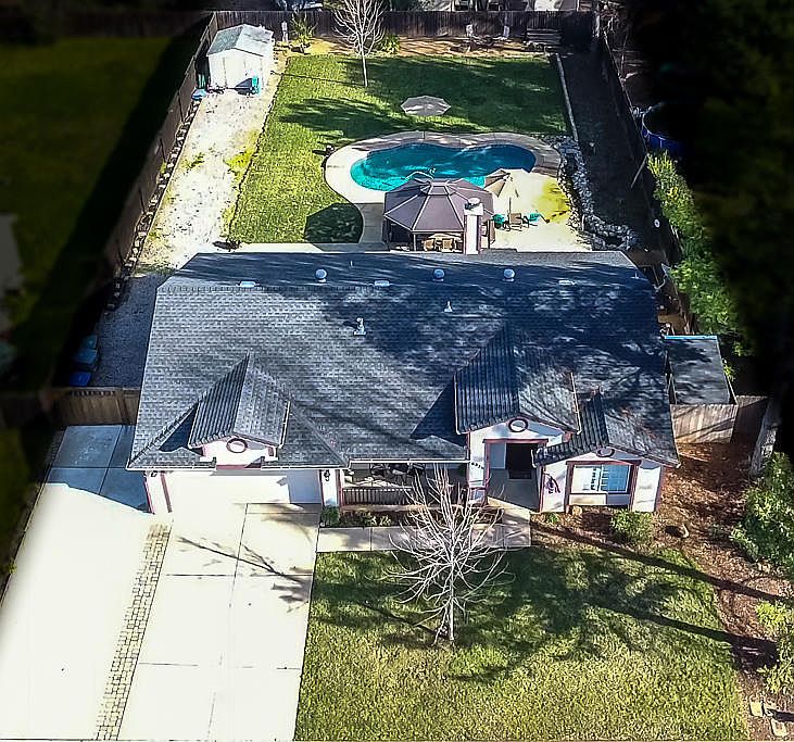 Gorgeous home with Pool and expansive back yard. Bright open floor plan, vaulted ceilings, granite kitchen with stainless appliances, Custom built ins with eye catching finishes. Designer flooring, tastefully painted rooms, and excellent floor plan. Great curb appeal with R.V. parking and large out building. Gorgeous pool with custom patio and water feature.