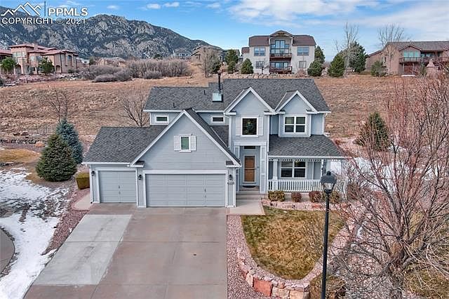 Spectacular Setting in D12! The Pride of Ownership shines through & through! This home has been meticulously cared for and features many tasteful updates. The unbelievable mountain backdrop sets the tone for this great find! This 4 Bedroom, 5 Bath home has stunning hardwood floors, a two story entry, beautiful natural lighting, spacious living room, formal dining room, a kitchen that will impress with a large center island, magnificent lighting , large eat in area & access to back yard deck. The Great Room features a soaring ceiling, gas fireplace, huge dramatic windows with views of the mountains and access to a private home office. Convenient main level laundry room has cabinets and a utility sink. The 3 car garage provides great space for cars, bikes and storage. The Master Bedroom showcases a great escape with vaulted ceiling, beautiful lighting, ceiling fan, adjoining tiled bath with dual vanity, oversized tub, glass shower and large walk in closet! Two additional bedrooms have vaulted ceilings and a full bath complete the upper level. You will be proud to entertain in this finished lower level featuring a huge recreation room, game closet, pool table, 4th Bedroom, full bath and storage galore! This yard will give you endless hours of relaxation as you enjoy the breathtaking mountain views from the custom covered porch, landscaped garden and a lovely pathway to front of home. Outstanding location walk to schools, parks, tennis courts, shopping & restaurants. Easy access to Hwy 115, I25 and Ft Carson.
