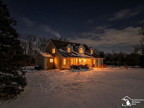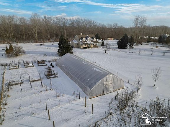 A beautifully secluded 4 bedroom, 3.5 bath property offering abundant wildlife, including deer, blue herons, wood ducks, turtles, turkeys, and a wide variety of birds. Trophy-size deer and turkeys make this an exceptional setting for hunters and outdoor enthusiasts. The land is bordered by a 60-acre forest, farm fields, and additional wooded acreage, creating a peaceful, private environment perfect for families seeking simple living, homesteading, gardening, fishing, and year-round outdoor activities. The home features 2x6 exterior walls for added energy efficiency and sound proofing; a first-floor primary suite with a fully remodeled bath, a large walk-in closet, and scenic views. An additional first-floor bedroom can serve as a guest room or office. The updated farmhouse kitchen includes shiplap accents, quartz countertops, open shelving, and hardwood flooring throughout the main level and second floor. Upstairs, two spacious bedroom suites (own personal full bath each) and a large loft provide flexible living space for family or guests. This 6.48 acre property includes two picturesque ponds—one fully stocked and suitable for kayaking—along with mature pine and willow trees. A thriving market-garden homestead has been cultivated with six years of organic practices and includes a documented organic transition plan. Additional features include a solar-powered greenhouse with rainwater drip irrigation (installed Spring 2026), regenerative soil systems supported by free-range livestock, a large orchard and garden, and an underground well-water system supplying the garden and livestock areas. With low Monroe County taxes and convenient access to Flat Rock, this property blends modern comfort with true country living—ideal for families, hobby farmers, nature lovers, and anyone dreaming of a self-sustaining lifestyle. Pictures taken from recent summer years. Don't miss this opportunity!