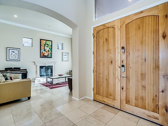 Beautiful contemporary with gorgeous mountain, sunset & city views located in desirable, gated Paloma Canyon. Welcoming front courtyard with double doors opening to a grand entry. Inviting living room w/high ceilings & fireplace, formal dining room, gourmet kitchen w/granite countertops, gas stove top, island, double ovens & generous pantry. Mountain views from master bedroom with wooden floors and spa bath (dual vanities, garden tub and his & hers walk in closets). Large study with built in desks/bookcase. Upstairs are 3 additional bedrooms. Loft area made for relaxing, entertaining or kids area. Covered back patio, pool with fountain, built in BBQ, BB court and turfed play area w/swing set.