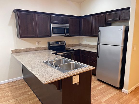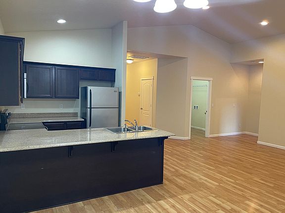 3 bedroom, 2 bath home features vaulted great room, kitchen with granite countertops, island, stainless refrigerator. Laminate flooring in the shared areas, new carpet in all the bedrooms. Vaulted main suite features walk in close and ample storage. Washer/dryer hook ups. Attached double car garage for ease of access in the cold winter months ahead! Conveniently located for ease of access to amenities, yet at the end of the road minimizing traffic.