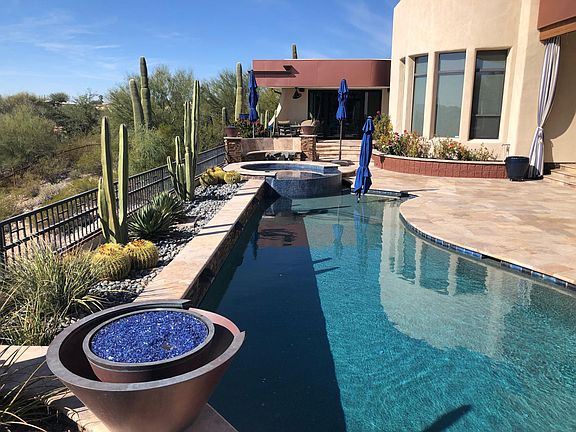 High-end appointments form the base of this extravagant and luxurious villa/guesthouse, with folding glass doors overlooking a private patio and views of the gorgeous resort-style pool and city lights. Centrally located in the Catalina Foothills with major cross streets at River Road and Hacienda Del Sol Road, putting the villa/guesthouse just minutes from the University of Arizona, shops, malls, Fine Dining, the River Walk, the Farmers Markets, St. Phillips Plaza, and much much more. Will consider three or four month lease. Fire pots and spa available year round at guest's pleasure. Pool is available but only heated by solar; heat pump available at guest's request at additional fee. No pets. Non-smoking. Particularly situated for Executives and Winter Visitors. Secure online payments.
