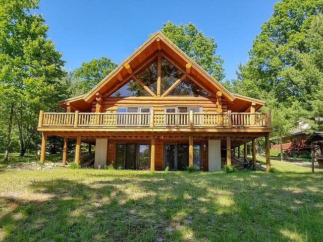 Authentic, custom built, full log home on a beautiful lot on all sports Secord Lake with 100' of natural sandy beach frontage. Make this unfinished dream home on the water into your very own. Unfortunately health issues did not allow the completion of the final details. The family hopes that someone with that same vision and care will finish this great home to be one of the best on the lake and enjoy many family memories like they have. Home includes a high efficiency boiler to enjoy the in-floor heating, two of three full baths are finished leaving the master for your taste. Wood burning fireplace waiting for your selection of stone and mantle, floor to ceiling glass for great views, fully finished kitchen, four large bedrooms, additional 1400 sq ft in full walk out basement, 3 car garage w/full attic space for storage. There is a 1/29th share in an additional 19 acres across the road with nature trails co-owned with your Rose Lane neighbors, and many acres of state land nearby.