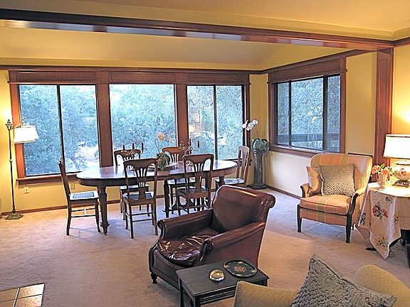 Home is on 2+ acres with wonderful views and native landscaping. Home is beautifully finished in cherry wood. The spacious, open kitchen boasts hand hewn cabinets and stainless appliances. There are 3 bedrooms,2.5 baths in the main house,two privacy decks,formal living room, library and family room. Downstairs area includes a separate studio with kitchenette and full bathroom. Also downstairs is a large shop area, oversized two car garage plus carport. Call listing agent for more information- Diana Jules (559) 799-8201