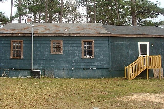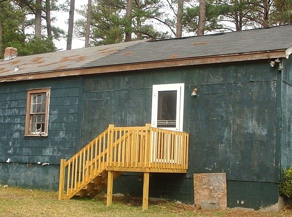 Exterior Features:Home: Green in color siding, Roof shingle type, windows wood frame intact, no gutters, concrete front porch, french in yard front and back, storage home in back, wood deck, A.C. Unit founded.Interior Features:Home: Living room, carpet flooring, stained, Kitchen: No Appliances, dinning room, tile flooring, (1) Bedroom, carpet flooring stained, (2) Bedroom, hardwood flooring, Bathroom, tile flooring need repairing, (3) Bedroom, carpet flooring, stained. all mechanic intact.