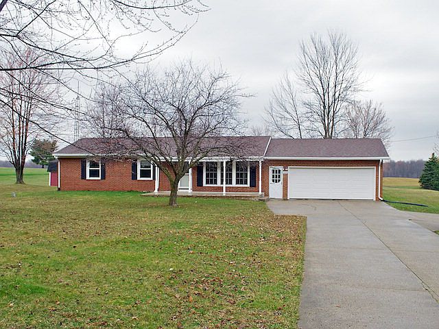 Cute little country ranch with all that outdoor elbow room you've been looking for! Lots of recent updates, too. Within the last few years the following have been updated: windows, front door, garage door, flooring, dishwasher, shower stall, covered porch, gutters and soffits. This sturdy-built modular home on full basement has been fortified with brick, all the way around! Newer roof and fresh interior paint means almost nothing you need to do - just move in and plant the garden! True 2.5 car garage and yard barn provide all the storage you need.