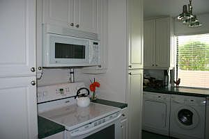 Beautifully renovated 3br 2.5 ba end unit townhome in The Fountains Country Club with open, light, and bright living space and fabulous views from the closed in lanai. Owner's suite is located on the 1st floor, with walkin closet and separate vanity/shower area. Kitchen features updated cabinets, white on white appliances, newer full size washer/dryer, and water filtration system. All baths have updated fixtures. New a/c installed april 2013. Water heater 1 yr old. New landscaping with 3 french drains and hurricane panels. A must see!