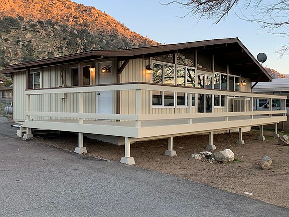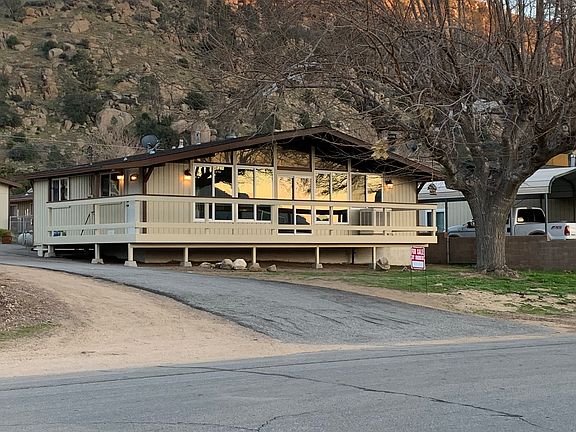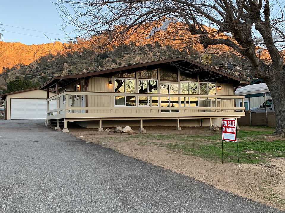 Nicely priced getaway cabin or permanent home that is located close to Isabella Lake for your fishing/boating enjoyment and shopping in the small town of Lake Isabella. 3 bedrooms, 1 bath with tung and groove, open beam ceilings and cedar walls everywhere. Kitchen and livingroom are an open floor plan with New sliding glass door, opening onto large covered deck, and new large windows along one wall overlooking a small front yard with a grand shade tree. Kitchen contains a breakfast bar, lovely wood cupboards and drawers, refrigerator and range/stove. Completely remodeled with new windows, new carpeting and laminate flooring , new exterior paint and a new garage door. . Home is fenced in the back with a 2 car detached garage of approximately 400 s.f. As as an added feature for all you readers, the library is just down the street from this cabin. Don't be shy, come and take a look!