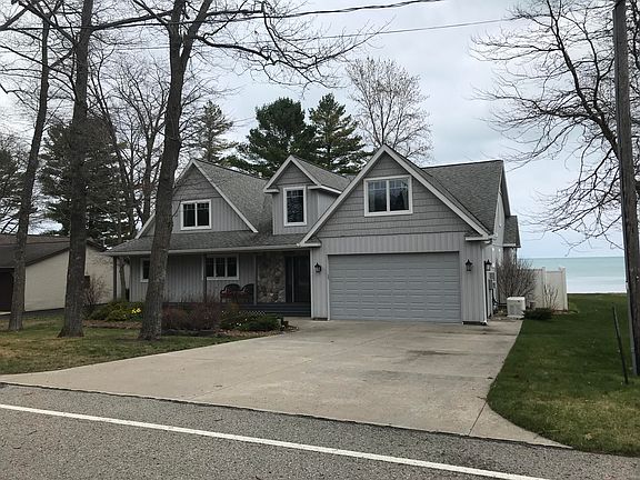Stunning sunrise views will greet you from almost every room of this magnificent waterfront home on 100 ft of Lake Huron sandy frontage! If you're looking for a place to host holiday celebrations, summer BBQ's or the ultimate beach party, this idyllic home is for you. Main level features: lakeside master suite, chef's kitchen w/Corian countertop & large island, family-gathering dining rm, living rm w/gas fireplace, home office, 1/2 bath & sunroom. Upstairs features: 3 bdrms (2 w/lakeside picturesque views) & 2 baths along w/bonus craft room or 5th bdrm. Includes plenty of storage room in the 2 car garage & the attached lakeside artist's studio makes a perfect wet bar, yoga studio or workshop. Fall to sleep to the sound of the surf and wake to the morning call of the loons.