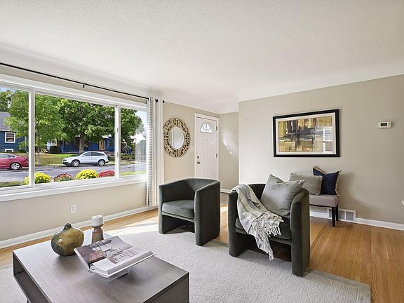 Adorable 1 ½ story, blocks from Nokomis! Fresh updates just completed: Refinished original hardwood floors, designer carpet and pad, fresh paint throughout and more! Sparkling light filled living room is nicely sized with features including expansive windows, hardwoods and coved ceilings. Great kitchen with stainless appliances and butcherblock countertops has adjoining informal dining. 3 lovely bedrooms, 2 on the main and an unexpected primary suite upstairs boasting a sitting area, ¾ bath and 14x5 walkthrough closet! Secondary bedrooms on the main share a refreshed full bath. Large, open lower level has great ceiling height and offers potential for finishing including a toilet in place for future bath addition! Flat lawn with patio and raised garden bed offers perfect space for BBQ’s and entertaining. Oversized 1 car garage. Newer roof and mechanicals, and Anderson windows! Fun location walkable to shops, restaurants, parks, trails and the lake. Nothing to do but move in and enjoy!