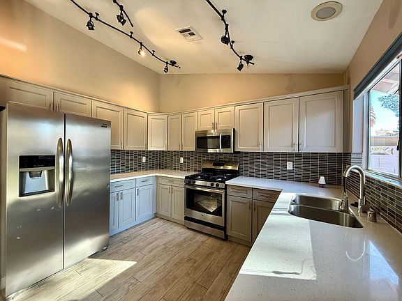 COMING SOON! AVAILABLE FEB 7TH, 2025. GORGEOUS 3 BEDROOM, 2 FULL BATHROOM HOME IN NORTH LAS VEGAS! OPEN FLOOR PLAN AND VAULTED CEILINGS! KITCHEN OFFERS LUXURY CABINETS, QUARTZ COUNTERTOPS, STAINLESS STEEL APPLIANCES, AND TWO SETS OF TRACK LIGHTING. FROM THE KITCHEN YOU CAN ACCESS YOUR COVERED PATIO THROUGH FRENCH DOORS. THIS LEADS OUT TO A LARGE FULLY LANDSCAPED BACKYARD WITH ARTIFICIAL TURF, FIRE PIT, PLANTS AND TREES. HOME HAS NO CARPET THROUGHOUT THE HOUSE! SUNKEN LIVING ROOM HAS A TWO WAY FIREPLACE. PRIMARY BATHROOM HAS DUAL SINKS AND A WALK-IN SHOWER. GO TO RPMLV.COM TO APPLY ONLINE AND FOR VIEWING THE PROPERTY BY CLICKING ON THE LISTING $95 APPLICATION FEE (PER ADULT) (NON-REFUNDABLE) $40O MOVE-IN ADMIN FEE (NON-REFUNDABLE) $500 PET FEE (PER PET) (NON-REFUNDABLE) $2200 SECURITY DEPOSIT (REFUNDABLE) PETS CONSIDERED NO SMOKING ALLOWED
