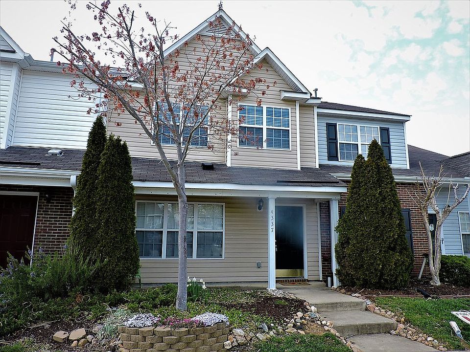 Better than new townhouse with fresh paint and totally remodeled kitchen from custom cabinets, tile back splash, granite counters / island and newer stainless appliances. Hardwood floors throughout main level living room, dining and kitchen. New carpet up steps. Vaulted master with updated bath cabinet. Hard to find 3 brs and 2.5 baths! GREAT LAKE VIEW off garden patio or relax on your rocking chair front porch. Spring flowers are blooming off the porch waiting for a new owner. MOVE-IN READY!