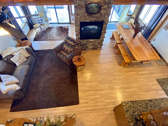 A 10 acre slice of Northern Michigan paradise with 300ft of AuSable River frontage will become a beloved oasis for future owners. The serenity of the woods, the abundant recreational options of the water, and a gorgeous home are all in high demand and this one will not disappoint. The property is perfect for retirees looking for peace and quiet, families wanting to relocate Up North while working from home, or as a fabulous vacation getaway. The updates must be seen in person to be truly appreciated, but it is not an exaggeration to say every detail has been tastefully finished. The stunning main room features a see-through stone fireplace finished to the ceiling and a beautiful wetbar. This room is so cozy and ideal for family gatherings and entertaining friends.