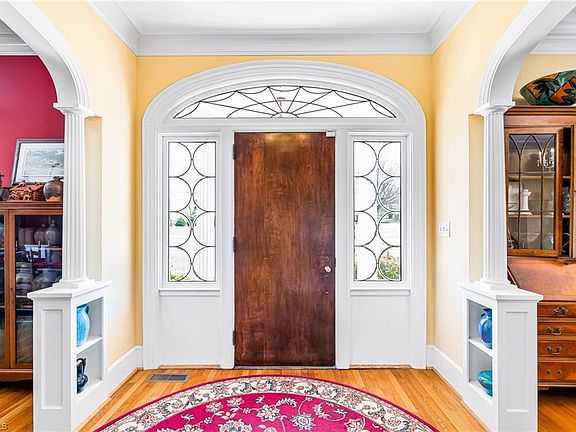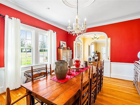 Discover the charm and elegance of this beautiful historic home located in the Village of Alamance. This home is situated on 4.61 acres w/a large stocked pond. With over 5000 SF of living area, this unique home has arched entry ways, high ceilings, hardwood floors, & tile baths. The main level features an inviting foyer leading to a formal living rm & dining rm. The spacious kitchen has solid surface countertops, island & adjoining b-fast rm as well as a porch. Living rm & sun rm both have a fireplace. The main level also includes a Den that could be used as a 5th BR, full bath & a covered porch with a view of the beautiful yard & pond. Upstairs features 4 BR's, 2 full baths (updated), a nursery & an office overlooking the pond. Basement has 1157 finished SF with a large rec rm that could be used as bedroom space & full bath. Basement access to the beautiful grounds & pond. Double detached & single attached garages. The circular drive resurfaced in 2021. High efficiency windows.