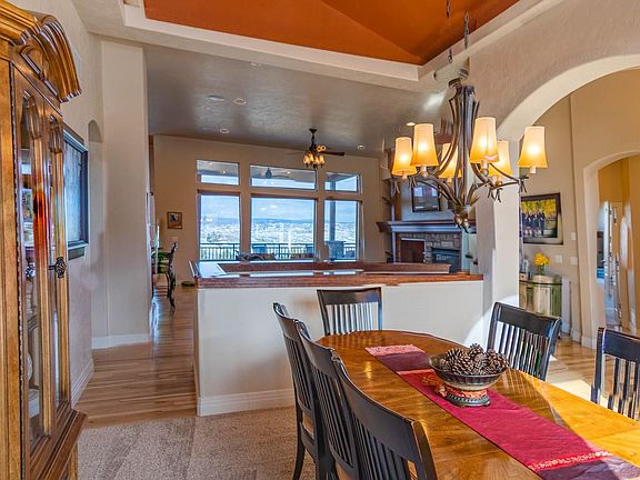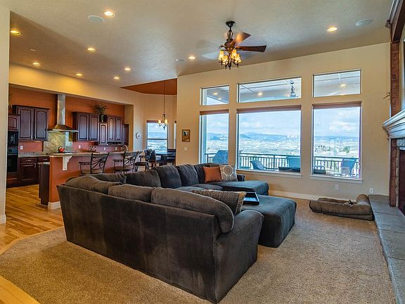 Walkout Ranch Home with MOUNTAIN VIEWS.-Pikes Peak, Dawson's Butte, Mount Evans, and the entire Front Range from your kitchen, family room, master suite, guest bedrooms, large concrete deck or covered patio. Located in Painter's Ridge neighborhood in Crystal Valley Ranch, on a half-acre lot. PERFECT for entertaining and families - Large kitchen with granite counters, expansive Great Room, finished walk out basement,recreation room, wet bar, theater room, and spectacular deck, and fully covered walkout patio. The extra-large concrete deck is maintenance free, partially covered, The backyard includes impeccable landscaping, a fire pit and invisible dog fence. Three car garage includes a hot and cold water hook up to clean your car or give your dog a bath. Whole house and garage Central Vac system is a great touch. House contains 2 water heaters, 2 Furnaces (upstairs/downstairs) as well as a humidifier.