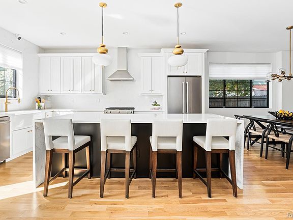 - Description: Exceptional Kitchen With Custom Quartz Counters And Counter-Ceiling Single Slab Backsplash. Island Seating And Stainless Steel Appliances.