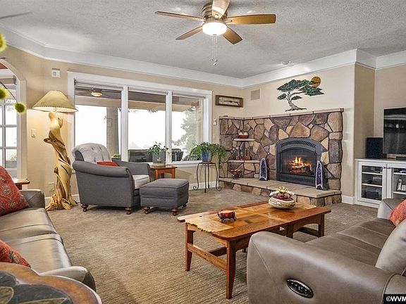 Accepted Offer with Contingencies. Beautiful 1992 home w/4 beds & 2.5 bath on 10 secluded acres in W. Salem on private drive. Incredible Cascades views. Updated & meticulously maintained. Beautiful hardwood floors, custom mahogany front door, 3 fireplaces-including master suite on main floor w/heated bath floor, freestanding tub & large WIC. Trex decking w/firepit, covered area w/lighting & heater. Large bonus rm w/wet bar & upper deck east views. 4 flat, usable acres. 5 acres forest. Massive storage, walk-in attic & oversized RV bldg.