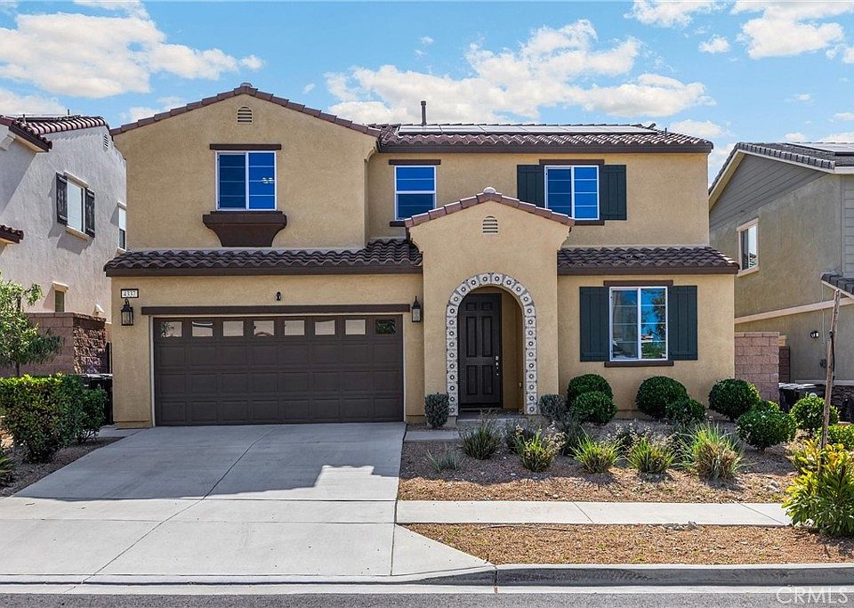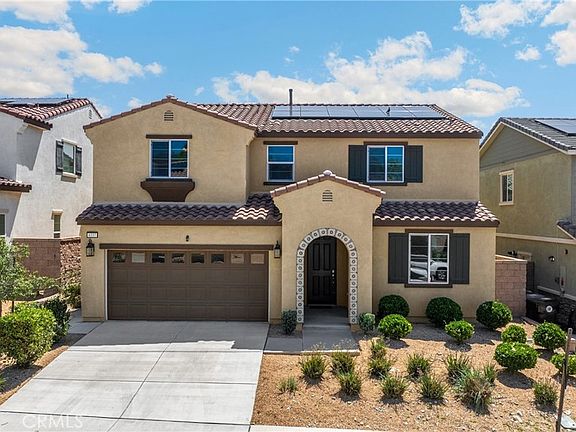 ***PRICE IMPROVEMENT***Beautiful Home with an en-suite downstairs bedroom downstairs perfect for guests or multi-generalional living. PAID OFF SOLAR!!! NO HOA!!! Come one and all to see this fabulous home with the perfect floor plan with plenty of room . The large kitchen is the heart of the home with a walk in pantry, lots of storage and a large granite island that is perfect to gather around and is open to the great room. There is also a half bath located by the great room. The upstairs has a great loft area for entertaining. The large master suite has a deep soaking tub, separate shower, large vanity with double sinks, a separate water closet, also a generous walk-in closet in the bath area. Another large bedroom with a walk-in closet and an office at the end of the hall with yet another walk-in closet The laundry room is conveniently located upstairs as well. Just down the street is a fun park with a playground, an enclosed dog park for your fur babies, also a basketball court! Low maintenance front and back yard. Ideally located near the 15 and 210 freeways for an easy commute. NO HOA and SOLAR IS PAID OFF!! Come and see, you will fall in love!