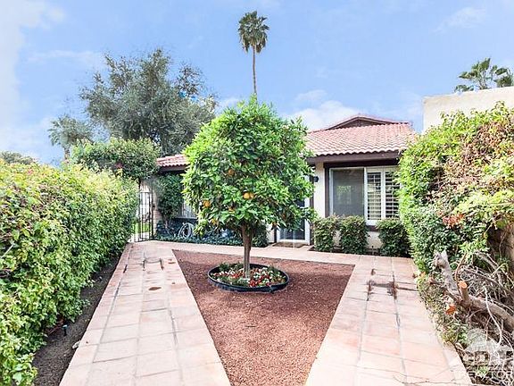 Simply Adorable own your own paradise - located in the heart of Palm Desert - a short walk to El Paseo, Palm Desert Park, library, COD street fair and the McCallum theater. This Charming and quiet neighborhood property at the end of a cul-de-sac features an updated kitchen - granite counters splash back, newer fridge, pantry, indoor washer/dryer, private courtyard entrance, separate private in ground pool/spa, natural koi pond (with water fall feature); all within view from the kitchen and living areas; lushly landscaped with a large prickly pear cactus, bougainvillea, pyrocatha, satillo pavers, small lawn area and block fenced for your privacy and enjoyment. Inside features are just as appealing; wet bar, $5000 air conditioner new this year. You own this paradise and no HOA's. Turnkey furnished!