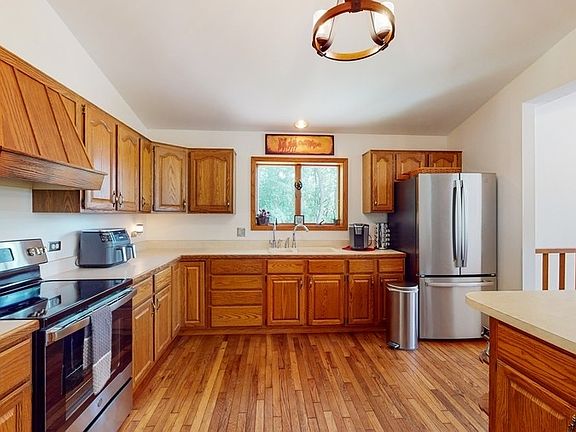 This charming ranch style home is nestled into a tree haven with views of nature all four seasons and offers you a slice of paradise. Just under 15 acres, this horse property is all set up for your equines and ready to be utilized! Home has an open floor plan with full basement. Kitchen features stainless appliances Refrigerator/Oven (2023), ample countertops for the cooking enthusiast, and space for seating two at the island counter. Beautiful oak cabinetry & hardwood flooring. 2 heating systems, 6-inch walls and 400 amp service make for an energy efficient home. Primary bedroom features completely remodeled bathroom with designer inspired finishes and lighting (2023). Second full bath has been completely remodeled (2023). New carpet throughout first floor (2023). Lower level features a third bedroom, laundry, and plenty of space for transforming into the room(s) you need. Newer Washer/Dryer. Carrier Heat Pump (2021). Well Pump (2020). Outside enjoy three living spaces including the patio nestled into the wooded landscape, the deck off of the dining area or the patio with views of your property and pastures. Barn (54 x 34) has lean to for hay or equipment, two lofts, five stalls with room for more and a heated tack/feed room with water. Space for tacking up, equipment storage. Dutch doors on the exterior 4 of 5 stalls lead to paddocks that include Hahn grids and limestone base for mud control. Round pen and panels stay with property for additional turnout options. Four pastures allow options for rotation. Grass arena located directly across from barn. 8+ acres currently used for hay allows for additional riding. Less than one mile to nearest Forest Preserve for additional riding, hiking and biking. Driveway repaired and resealed (2023). This peaceful property is ready to move in for the horse and rider and is well thought out for the horse lover. Farm equipment includes compact tractor, BushHog and more. Just a few minutes to 294, the quaint town of Antioch, shopping, restaurants, major transportation. Conveniently located between Chicago and Milwaukee. This listing includes two PINS (43375 N Hunt Club which is 5.37 acres per survey and 43279 N Hunt Club which is 9.43 acres per survey)