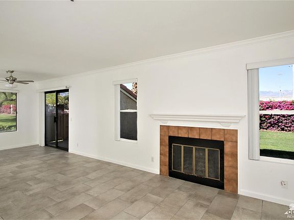 Charming 2BD/2BA condo located in the heart of Palm Desert. This sought after single story end unit is surrounded by terrific mountain exposure. The interior features a functional layout, great room with fireplace, custom flooring, fresh paint and newly remodeled bathrooms. Palm Lakes has a low HOA and offers an affordable opportunity to reside in a community with many amenities; recently remodeled fitness center & clubhouse, dry sauna, 2 pools, sand volleyball court, and 2 tennis courts. Bonus: New energy efficient AC unit installed in 2017.