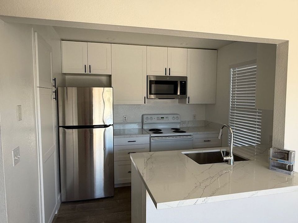 Newly remodeled 2 bedroom condo in gated Palm Lake. New hardwood flooring throughout, new cabinets and quartz countertops, new shower enclosures and new vanities. Indoor laundry room, fireplace, walk in closet in primary bedroom. Spacious private backyard. Community offers a clubhouse, exercise room and pool/spa. Covered parking space included. Please click apply now to view application qualifications. *If you see this home advertised online for less than the rental amount quoted here, the ad is a SCAM. We are the only authorized agent for this property. Please email us a link to any bogus or fraudulent ads so we can report it to the appropriate authorities. Please do NOT send money to anyone who offers keys in exchange for a deposit check - especially if they are out of state. When in doubt, please feel free to contact us.*