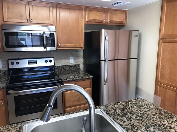This beautiful end unit is located in the guard gated community of Palm Lakes. This condo has been remodeled with new kitchen cabinets, granite countertops and new backsplash. Stainless steel appliances, beautiful tile throughout the whole unit, crown molding in living dining area, LED lights, new AC unit, are some of the many upgrades. Large enclosed private patio with peek a boo mountain views. Palm Lakes offers a fitness center with new machines and sauna, 2 community pools, tennis, volleyball and pickle ball courts. Great location near shopping and dining. Landlord pays HOA dues, water and trash. All applicants must have the following: All adults must apply and participate in credit, criminal background, and eviction screening through Apply Connect. No bankruptcy within the past 2 years, no prior evictions, good rental history. No co-signers. Verifiable monthly income of 3 times the monthly rent. Tenant is required to obtain renter's insurance before move in.