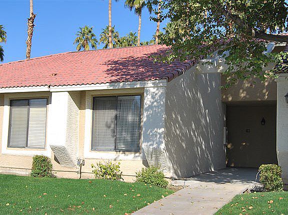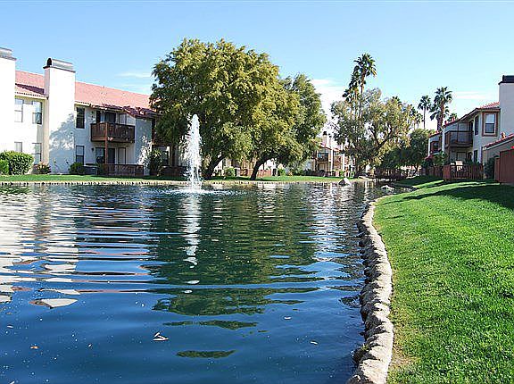 Palm Lake Condo. Single story overlooking fountain and lake. 2/2. Updated kitchen with all new stainless appliances. White cabinetry and granite slab countertops. Newly updated bathrooms with granite countertops. New LVP flooring in kitchen and bedrooms. New ceiling fans. 18” ceramic tile. Fully Turnkey furnished. Gated community with guard, Pools, jacuzzi, gym, tennis, sauna, volleyball, clubhouse and dog park. Assigned covered parking. Overlooking beautiful lake, fountains and mountain view. Steps from pool, spa and clubhouse. Close to El Paseo and shopping.