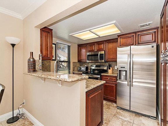Welcome to this move-in-ready condo in the desirable Palm Lake community! Its prime location is just steps away from the entrance and the serene pond, where you can watch turtles and soak up the sun by the community pool. This community also features tennis courts, a clubhouse, and a gym.Inside, you'll find a charming interior with granite countertops, upgraded cabinets, and a spacious open floor plan. The condo includes two spacious bedrooms, two updated bathrooms, convenient laundry closets, and a private enclosed patio, perfect for entertaining and creating your own personal oasis.Palm Lake's unbeatable location offers easy access to colleges, shopping, dining, and major freeways, making it an ideal choice for a full-time residence, vacation home, or rental property.
