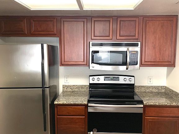 Freshly remodeled, single story condo. 1 bedroom + 1 bath, 703 sq.ft. New carpet, new blinds, brand new stainless steel appliances (range, dishwasher, microwave & refrigerator). This unit has plenty of storage in the kitchen, bath, coat closet, linen closet. New full size washer & dryer inside the unit!! The main bedroom has two spacious wardrobe closets and plush new carpet, new blinds, fresh paint! Tile throughout all living areas. Single level unit, with private fenced rear patio and extra storage closet, peak-a-boo mountain views. No unit behind you or above you. Palm Lake is a private, guard gated community, centrally located in Palm Desert, CA, with easy I-10 freeway access. El Paseo, Aquatic Center, Civic Center Park, Hiking- Bump & Grind, restaurants, coffee shops and post office all within 5-10 minute drive. Move-in-ready now! Call today for your private tour. Owner pays water, trash & HOA dues. Tenant pays electric, gas, cable, etc. NO smoking. Call for pet restrictions, additional pet deposit will be required. One year lease with credit, background check and income verification of at least 2.5X rent amount. Tenant pays for credit/background check, $41.99 per adult applicant.