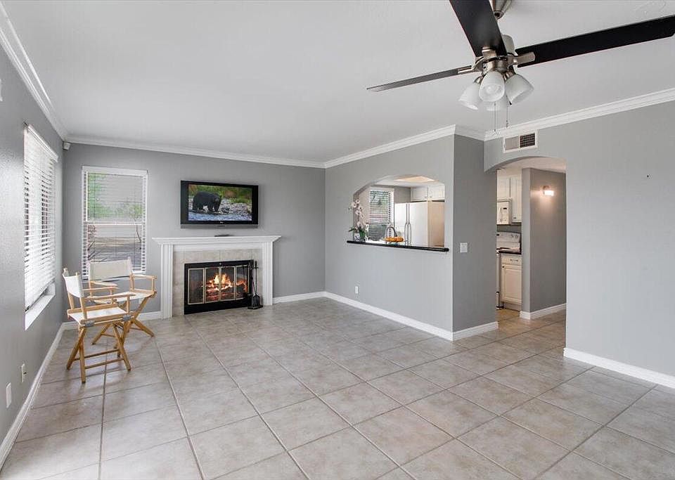 Come experience this updated condo with beautiful mountain views within the guard-gated community of Palm Lake, conveniently located near El Paseo shopping, restaurants and entertainment. Perfectly situated within the complex as a coveted single story end unit, it features granite countertops, brand new carpet in the bedroom, tiled floor in the living area, a cozy fireplace, and crown molding. It is equipped with a Nest thermostat, in-unit laundry hookups, and also comes with two parking spaces--one carport and one open space. Take in the views from the enclosed outdoor patio, and enjoy the community amenities, which include two pools, tennis and pickleball courts, and clubhouse with fitness center. Don't miss this great opportunity for desert living at an affordable price!