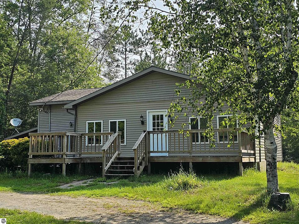 This extraordinary 3 bedroom, 2 bath home is located on the East side of Hale, close enough to quickly get to town yet far enough out to feel the peace and quiet of country living. If you are seeking a ranch home, main floor living with spacious floorplan look no further. Open floor plan, laundry and mud room off the master bedroom, gorgeous waterproof laminate floors perfect for the non-allergenic homeowner. The master bedroom has ample room for all your furnishings. Kitchen has Italian marble backsplash with Golden Rain wood countertop and Black Walnut live edge trim. Seven-piece LG Stainless Steel appliances to include a Convection Air fry oven, with Bluetooth connectivity to access your appliances with your phone. Master bath equipped with Bluetooth Speaker ceiling fan to listen to music, night lights, and humidity control, such a smart little detail. Down the hall you will find two more bedrooms and another full bath. Bonus room can be used for man cave, theater room, game room, etc. Home is ready to go, meticulously maintained and well loved. New windows and doors. Multi-level deck, garden shed and a carport. Spacious wooded lot with fire pit and perennials. Near lakes and ORV and snowmobile trails are at the end of the road. Welcome Home.