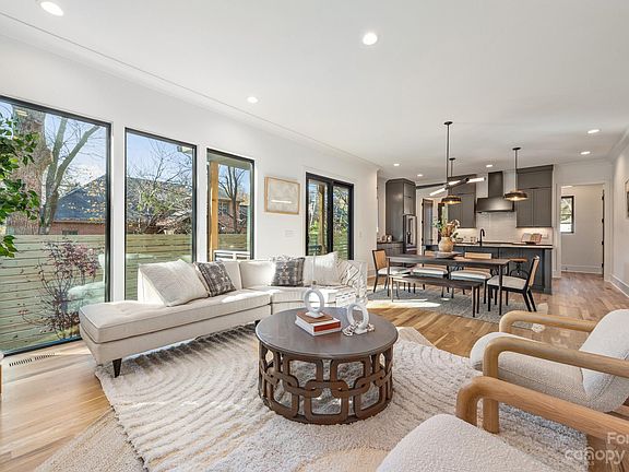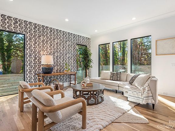 Beautifully designed new construction built in Cotswold by THR Design Build. Custom finishes, open floor plan, 5 beds, 3 full BA, and 2755 sf. Gorgeous primary suite includes lg. bathroom, 2 sink vanity, lg. walk in shower with 2 shower heads and bench, separate water closet and lg. closet with custom shelving. Kitchen features appliance package from the Café Series (black matte), 36” gas range, hood, 36” fridge, and dishwasher, walk in pantry, and stone countertops (chop block in pantry). Also included are a mudroom, site finished white oak hardwoods, solid core interior doors, laundry room on 2nd level, Rinnai tankless water heater, and 2 Trane high efficiency heat pumps, privacy fence, irrigation, and expansive landscaping. The crawlspace has been completely sealed and waterproofed: Sealing Agents. Oversized windows in the family room are 8 ft., 10 ft ceilings on the main and vaulted ceilings in all 4 upper rooms. Walk to Charlotte Swim and Raquet Club, Publix, and Cotswold Village.