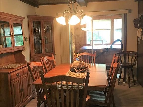Pride of ownership prevails in the workmanship of this well maintained rustic log cabin style surrounded by 3.2 acres. Original charm shines while many updates and improvements have been completed. Comfort welcomes you with large living room with fireplace. Plenty of space for entertaining in the added oversized cedar room with additional fireplace and surrounded with windows. Two main floor bedrooms plus finished 2nd level with oversized 3rd bedroom and 1/2 bath. Plenty of storage. Homes is freshly painted and topped with new roof. Living space continues with finished family room, game room, kitchen and bar area in basement. Well manicured park like setting displays oversized wrap around deck and cozy bonfire area. Two car attached garage plus additional 3 car garage completed with attached storage shed and bath. Plenty of room for an RV and garage has connection for RV. Home Warranty has been included.