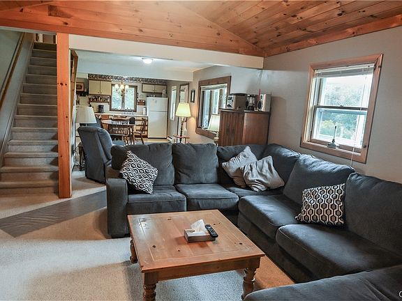 Here is your opportunity to own a property close to the snowmobile and ATV trail. An outdoor enthusiast dream. This Cape Cod is fully furnished and move in ready. There are two bedrooms with a full bathroom downstairs and two bedrooms and a full bathroom on the second floor. This house sleeps at least eight people comfortably. The kitchen and living room space have an open concept with plenty of space to relax. Two Located on a nice lot with a detached 2 stall garage that has potential for the second floor to be completed into more bedrooms or living space. The house was updated with two split air conditioning units upstairs and down. It also has high speed internet. The garage was built in 2019, so nearly new, it has in floor radiant heat. Also it has been spray foamed to keep heating cost down. This property has a great Airbnb following with a lot of return customers that could be passed onto the new owners. Keep the weeks you want and rent out the rest. Don't miss out on an opportunity to have your own get away or home in the country.