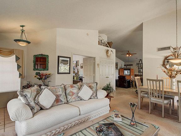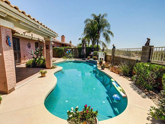 Absolutely stunning home in Red Mountain Ranch! VIEWS make this lovely home stand out from the others! Situated on a private cul-de-sac lot and backing up to preserve land, the resort like backyard has a covered patio with sparkling pool and spa and million dollar views of the mountains. Sunsets are amazing! This single level home has vaulted ceilings and the eat-in kitchen has a center island with breakfast bar, plenty of cabinet space and quartz countertops. Large master suite has plush carpet, ceiling fan, and private exit to backyard. Spacious walk in closet! Full spa like bathroom has double sink vanity and separate soaking tub + shower. Other features include an outside shower, RO system, and soft water loop. Seller will provide a one-year home warranty with purchase.