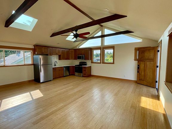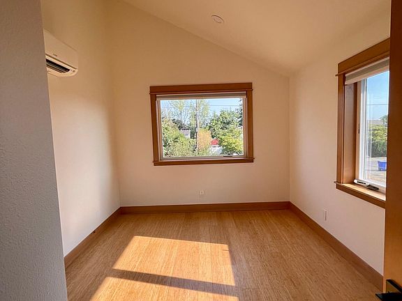Open house Thursday , July 3rd from 6:30-7:30pm. RSVP if you'll be coming please. The vaulted ceiling throughout this upstairs unit provide an open, spacious feeling that cannot be beat. Couple that the with the numerous skylights and oversized windows in this unit and you will never be wanting for natural light even in Portland's darker months. And the unit is Brand Spanking New! Construction just finished on this gorgeous duplex. Cali Bamboo floors throughout, hemlock trim, quartz countertops, stainless steel appliances, blackout blinds in the bedrooms and individual climate control every room.Breath easy, there are no gas appliances, only electric including a microwave with vented hood above the range. All materials are high end and low VOC. Off street parking for 1-2 vehicles. Washer and dryer. But that's just the material goodness of this unit. The real value is it's location. Nestled into a quiet neighborhood just 1 block off 42nd and Alberta, you are walking distances: Nepo 42, Pizza Jerk, legendary Portland nightlife institution, The Spare Room Restaurant & Lounge and whole lot more! You can also stroll a few minutes south down to Fremont for even more dining and drinking options. Water is paid by landlord which adds $150/month, making total rent $2350. Trash, recycling, compost also included. Trash, Recycling, Compost and Water bills are all included in the rent. 1 year lease which becomes month-to-month after first year. Dogs accepted on a case-by-case basis with $500 pet deposit. Minimum 700 credit score. Credit and background check required with application. This unit is not ADA accessible. This is a non-smoking unit inside. Outside smoke whatever you'd like.