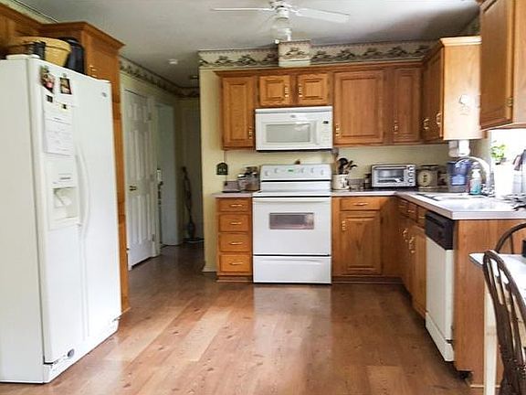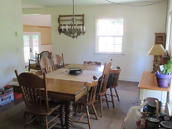 This fabulous cape cod offers so much ... as you enter this home from it's private driveway, you are greeted with approximately four acres of glorious, country acres, an oversized double car garage with a carport, shed, smoker, and larger shed currently used as a motorcycle garage. The large, covered front porch leads into the formal dining room. This was previously the living room and could certainly be used as this, again. The large, eat-in kitchen offers tons of cabinet space and a full appliance package. The three year old addition is used as a sunken family room with access to the front yard and access to the covered, rear patio and a wood burner. Two bedrooms and a full bath round out the main level. Upstairs offers the third bedroom, a loft/office/4th bedroom and the second full bath. The basement is not finished but offers high ceilings, an outside exit, wood burner (wood included) and laundry area. Several outbuildings previously housed animals. Great area for horses