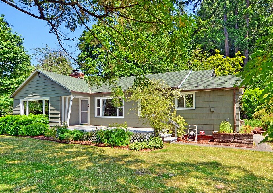 Classic Tracyton rambler on parklike 1 acre lot. 3br 1bth with partially finished basement. Large living room with fireplace. New interior paint. Vinyl windows. 1 car detached garage and storage shed. Architectural composition roof. Plenty of room to roam. Fruit trees.
