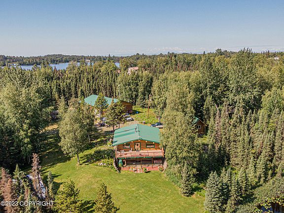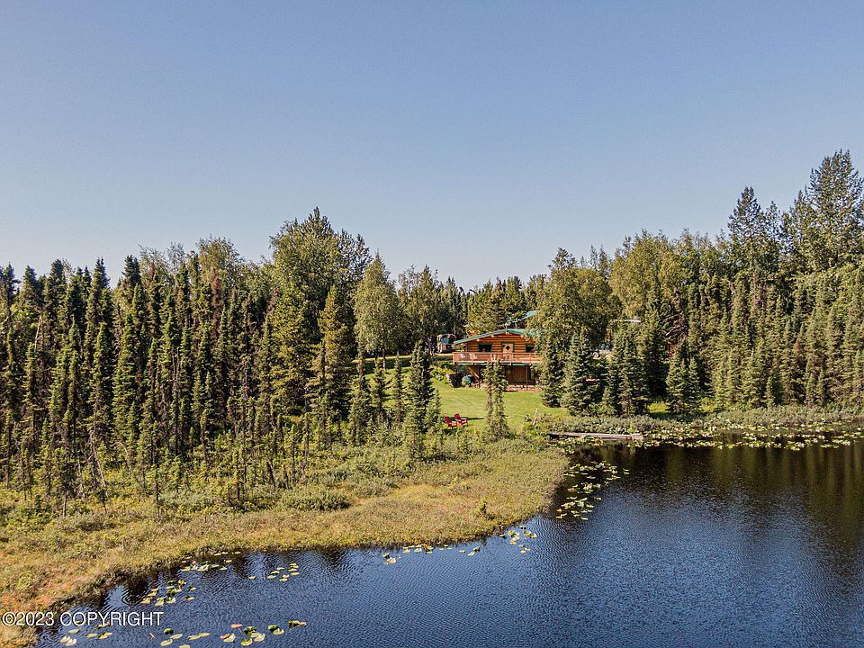 AMAZING LAKEFRONT PROPERTY! 2.4 Acres, 2 Lots, Alaskan 3 Bedroom Log Home w/2300sf, Darling Guest Cabin w/Full bath & 2400 sf SHOP w/IN-FLOOR HEAT, MEZZAINE & BATH, built in '05. Home has Mst Bed & Bath on upper level, Full basement w/walkout to lake, Upper & Lower decks. All Appliances + W/D stay, Can be Turn-Key. This property can be Your Own Private Oasis! Also Available- 2 Adj Lakefront Lots-2 Adjacent Lakefront Lots, Lot 6 (Tax ID# 05761022) & Lot 7 (Tax ID# 05761021), BOTH approx 1.2 Acres each, Available from seller, cost $55,000 each.