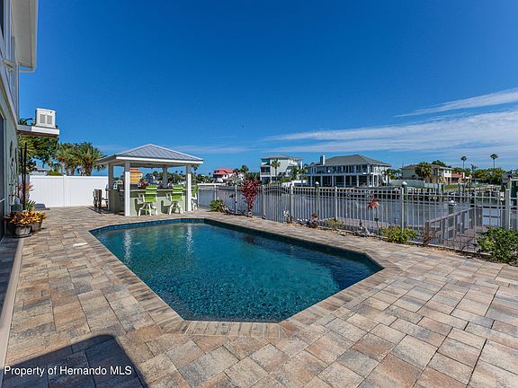 WATERFRONT COASTAL 2019 POOL HOME ! Just STUNNING. Nautically Nice with Boating Minutes to the Open GULF that you can see from your Floating Dock or 7k BOAT LIFT with Deck. Deep Salt Water Cheek's Creek Canal with Inlet on the Side for a Bit more room between neighbors. After a Day of Playing at Hernando Beach Flats or Going Scalloping or Fishing for Snook or Red's; Come Back for a Refreshing Swim in Your Salt Water Pool.. Friends & Family will certainly enjoy the SUMMER KITCHEN for their Beverage of choice or Some Barbecue. Need some shade? Downstairs also has a screened covered porch. For those cooler mornings when the season changes, get in your morning laps as the POOL is HEATED. This is Florida Living at its best. Three ways to get into the Home... Front Door, Stairs from Garage & ELEVATOR... You will love having an elevator for groceries, larger purchases & just when you do not feel like using the stairs. Now to tell you about your New Home.. 2019 Impact Windows & Doors, Spray Foam Insulation (called icing), Tankless Propane Water Heater, Metal Roof, Pavers Front Backs and on the Sides, Propane Generator.. Walk Through the Front Screened Porch into the Home for an Open Floor Plan. Living Room has Sliding Glass Doors that look out to the Upper Verandah with Views of the Water (it T's here) 9x36 Porcelain Tile through out the whole home. Ship Lap Walls.. one side looks antique. Vaulted Ceilings with Beam. You will Love the Coastal Kitchen: Soft Close Wood Shaker White Cabinets & Drawers with Built in Pantry, Granite Counters, Grey Subway Back Splash Tile, Kitchen/Island with Pendant Lighting, Stainless Steel Under Mount Sink, and the ''Big Chill'' Beach Blue Appliances: Refrigerator, Gas Oven/Range with Convection Fan, Range Hood & Dishwasher. Of Course, the elevator comes up right here for your groceries. Master Bedroom Suite is Split from other bedrooms for privacy. French Doors out to the Verandah, Crown Molding, Barn Door to Master Bathroom. Soft Close 3 Ft in Height Cabinet with Dual Sinks & Granite Counters, Walk in Shower with Shower Niche, Rain Shower Head and additional Hand Held. Walk in Closet with Organizer. Bedroom 2 and 3 have Organizers for their closets. Guest Bathroom also with Soft Close Cabinets & Granite Counters with a Tub/Shower Combo. Not only is there 3 Bedrooms but an Office with a Port Hole Window and Access to the Verandah as well. The Garage.. 1840 sf Downstairs !! Parking plus Workshop and Storage. Come... Love Where You Live and Play !! Hernando Beach is a Coastal Community that offers Restaurants, Marinas, Gift Shops, Lake Preserve with Walking & Biking Trails. The Famous Weeki Wachee River is just North of us too and is accessible via Boat or Drive. Come See !! VIDEO Coming Soon..