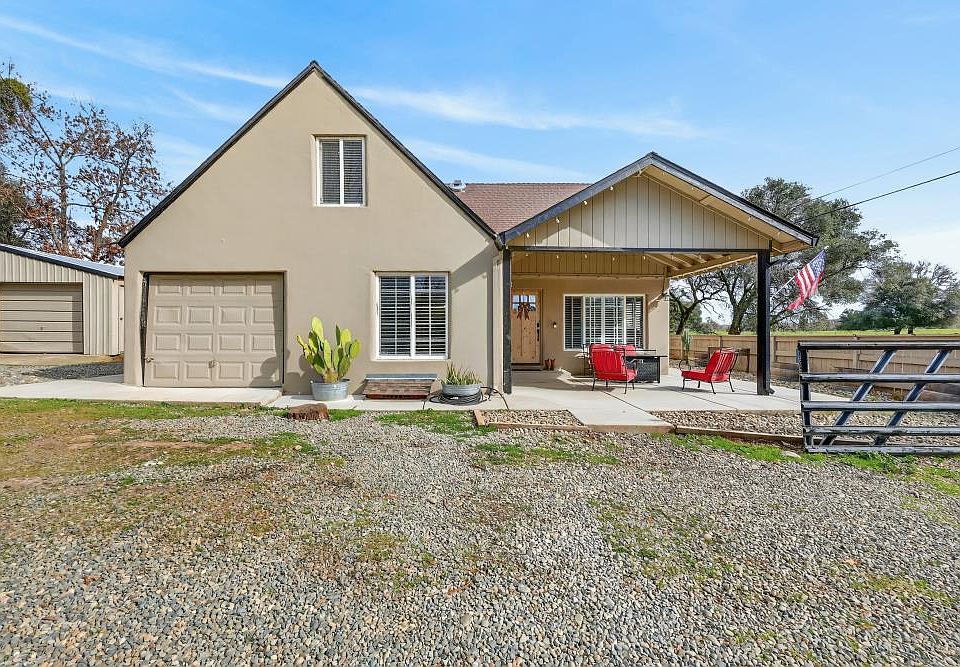 Enjoy country living without the commute! Your home is just minutes from the growing town of Lincoln, surrounding Wineries, Breweries and sits on an expansive 1.3-acre lot. You can have it all with this home offering ample space, flexibility, and income producing opportunities. Walking up to the home a covered front patio welcomes you into the remodeled main home featuring 2 large bedrooms, 1.5 baths, a spacious kitchen, mudroom, and a large open family room with new LVP flooring, fresh paint, updated lighting and more. Heading back outside to your upper level that offers a private exterior entrance, open living area, full bath, and plumbing in place for a future kitchen ideal for a potential ADU, in-law quarters, office, or rental opportunity. With an attached one-car garage plus 2 additional garages for storage, toys, a workshop, or ADU this property combines rural charm with income potential and room to grow.